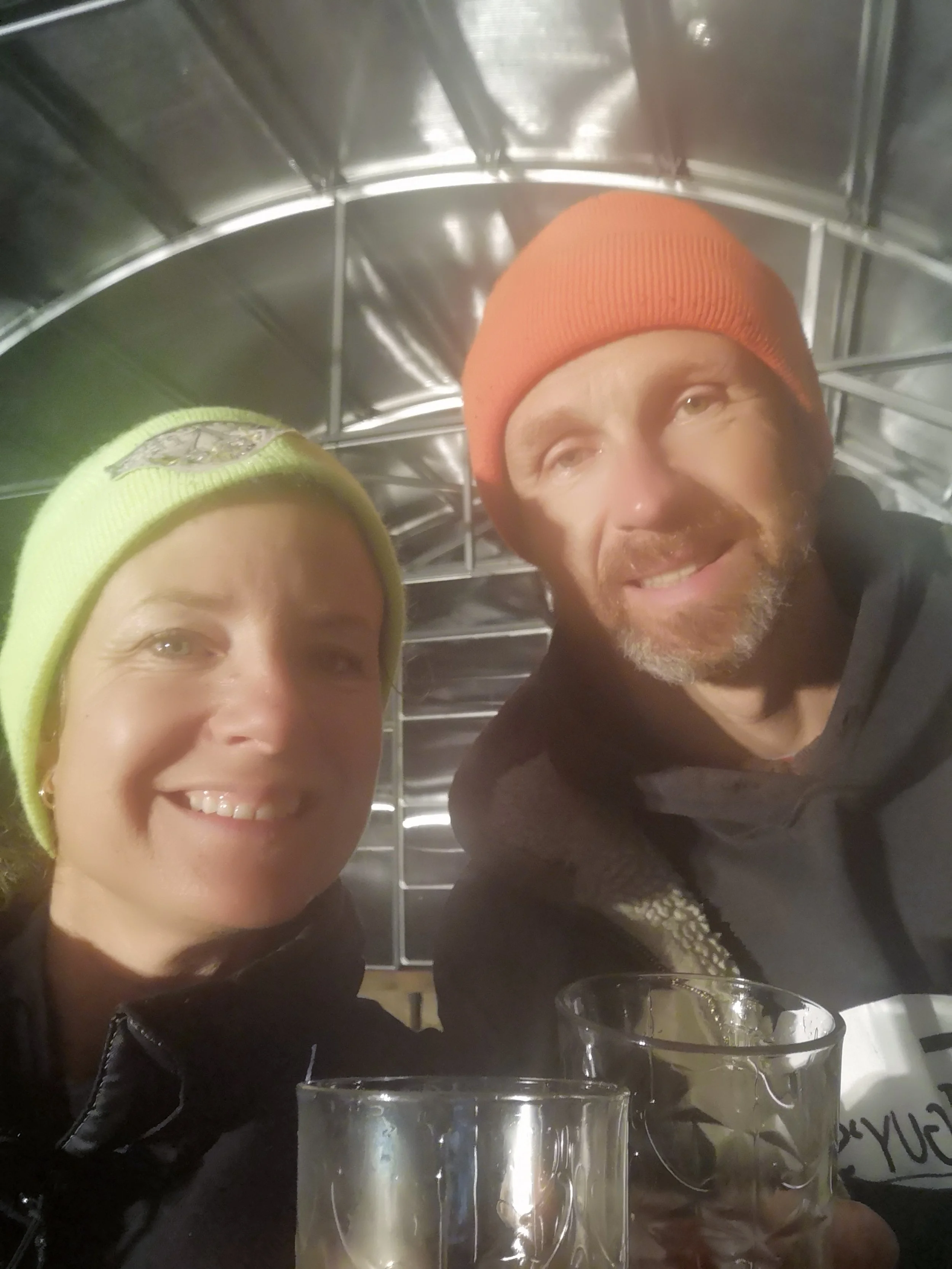 Once again, I witnessed (in awe) Rob and Bernie quickly and calmly come up with effective solutions to every issue that we encountered (and there were many!). Nothing seems to stop them or get them down. Whether it be a week late delivery, unloading without a forklift in the dark, piles almost being delayed (thank-you Adam from Bright Stone Construction for coming through for us, AGAIN!!), missing bolts, unclear instructions, extra parts, fastening bolts on a slippery spherical structure, finding ways to reach over wide panels to fasten them, leaks, the snow, the cold - they persevere, find a way and help bring us another step closer to our vision for Boreal Ranch. Bernie, Cédric, Jesse, Josh, Joe and Cash, we are so grateful for all of your awesome help and to have had you along with us!